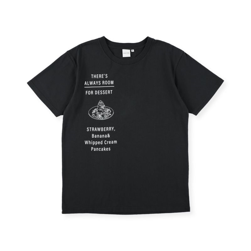 Strawberry,Banana & Whipped Cream Pancakesの イラストをプリントしました。 上部には"デザートは別腹"という意味の お茶目なロゴが入っています。