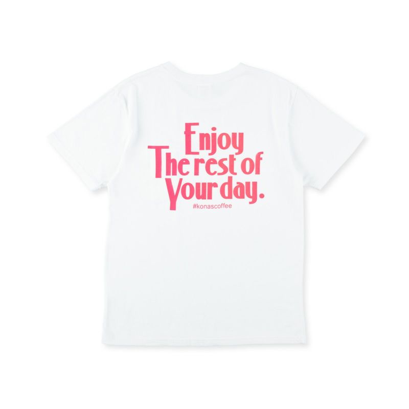 "良い一日を"という意味のロゴを大きくバックプリントした メッセージTシャツです。