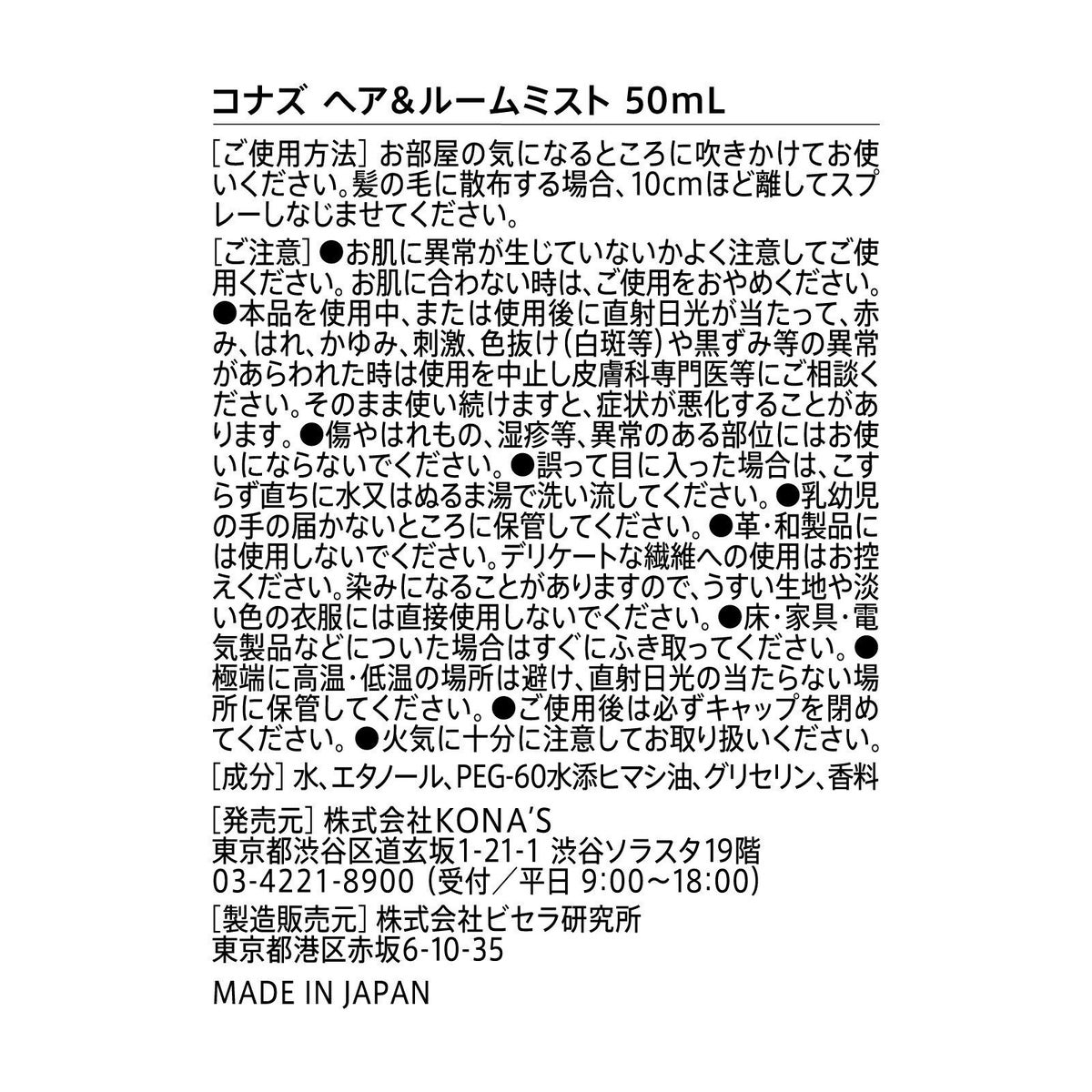 フレグランスミスト(ヘア&ルーム用)